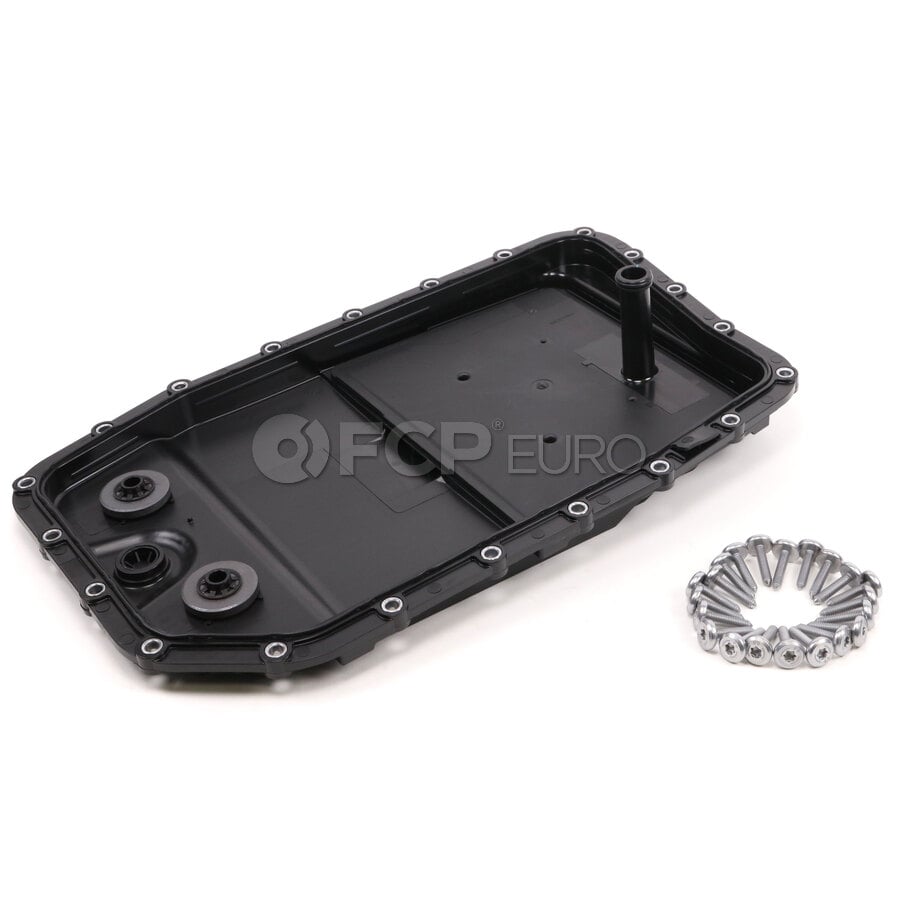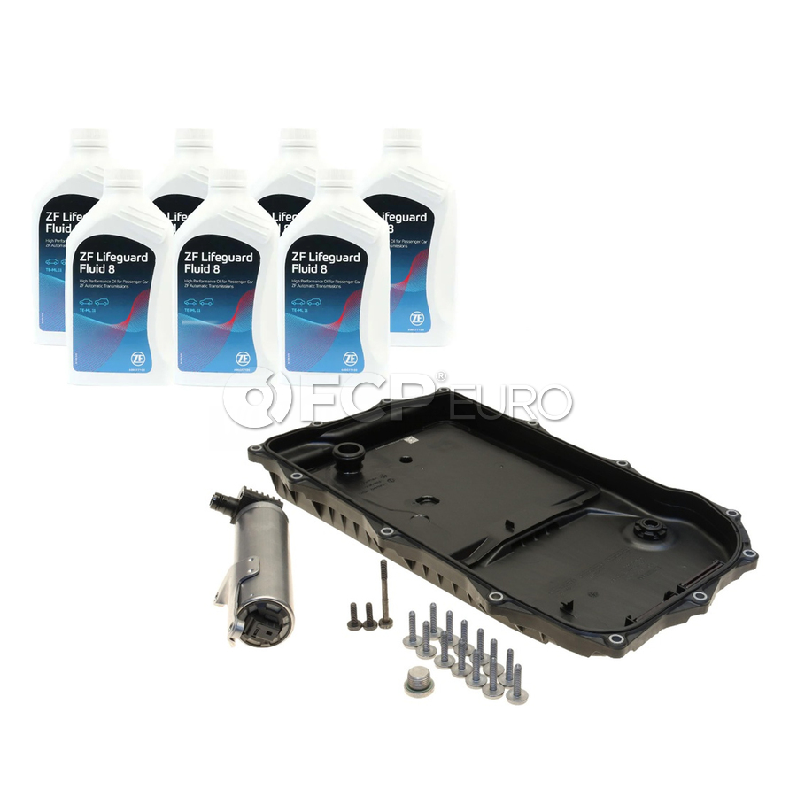 This kit includes a new auto start / stop pressure accumulator, mounting hardware, replacement oil pan and filter kit, and required ZF Lifeguard 8 transmission fluid. The auto start / stop pressure accumulator is responsible for keeping the transmission hydraulically charged when the engine shuts off. This ensures the transmission remains in neutral and can kick back into gear seamlessly when the engine starts again.